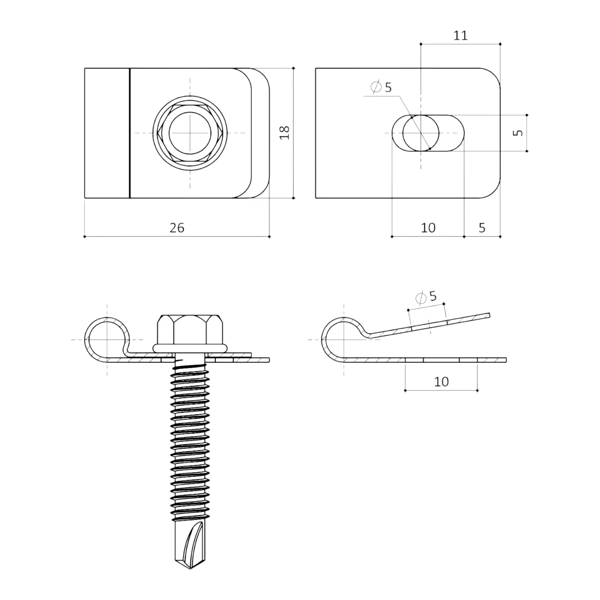 Univerzálna príchytka 2D 6/5/6 panela, ZN